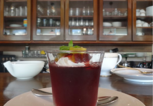 プルーンの季節限定のデザート。川上純さんの絞りたてジュースを使用。